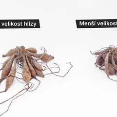 Jedná se o menší hlízu (velikost II). Nedělená hlíza jiřiny, kterou můžete po posledních mrazech sázet, nebo jí dále dělit a množit. Pro jistotu upozorňujeme, že každá hlíza je jinak velká. Některé druhy mají hlízy velké a protáhlé, jiné kompaktní a kulovité. Ale nebojte, velikost hlízy nemá vliv na velikost výsledné rostliny.