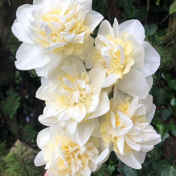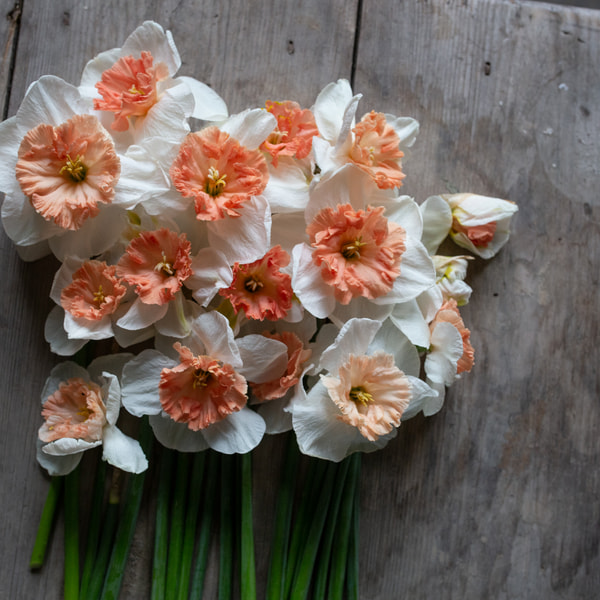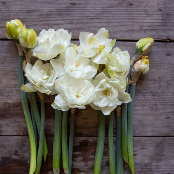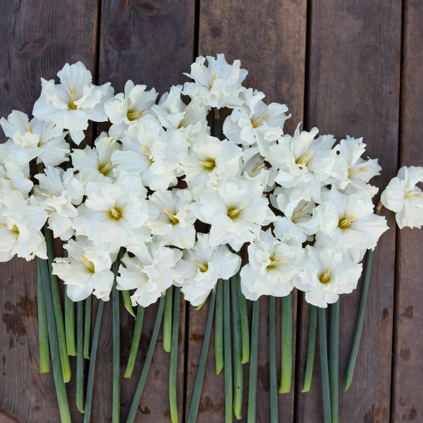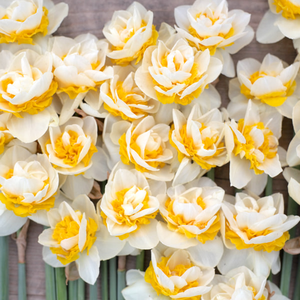 Kerrannaiskukkainen Double Dee on tilallamme aina ensimmäinen narsissi, se kukkii aikaisin keväällä. Keltainen kerrannainen keskus ja valkoiset tai kermanväriset reunat. Kasvattaa kauniit, tukevat ja pitkät varret, joten se sopii erinomaisesti kimppuihin.
