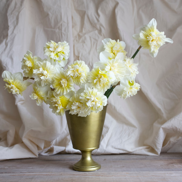 Upein tähän mennessä löytämämme narsissi ja tämän vuoden uutuus. Kukka on suurempi kuin useimmilla narsisseilla ja muistuttaa muodoltaan amaryllista, mikä on jo itsessään huippujuttu, mutta emme lopeta tähän! Väri on kermanvalkoinen, keskusta pehmeän keltainen ja hallitsevana piirteenä on erottuva emi. Ja lopuksi! Se tuoksuu syreenille. Kuin luotu hääsidontaan, me olemme aivan myytyjä.
