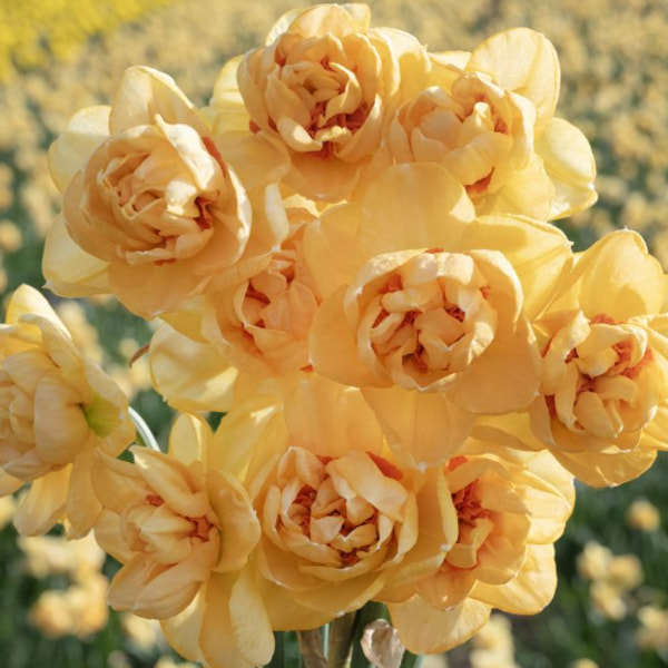 Kuningas narsissien joukossa! Kukkii myöhemmin kuin muut narsissit, mutta palkitsee tulvalla pieniä kerrottuja kukkia, joissa on ihana tuoksu. Pitkässä varressa kasvaa useita kermanvärisiä kukkia, joissa on kerrottu pehmeän oranssi keskusta. Korvaamaton osa jokaista kevätpenkkiä ja kimppua.